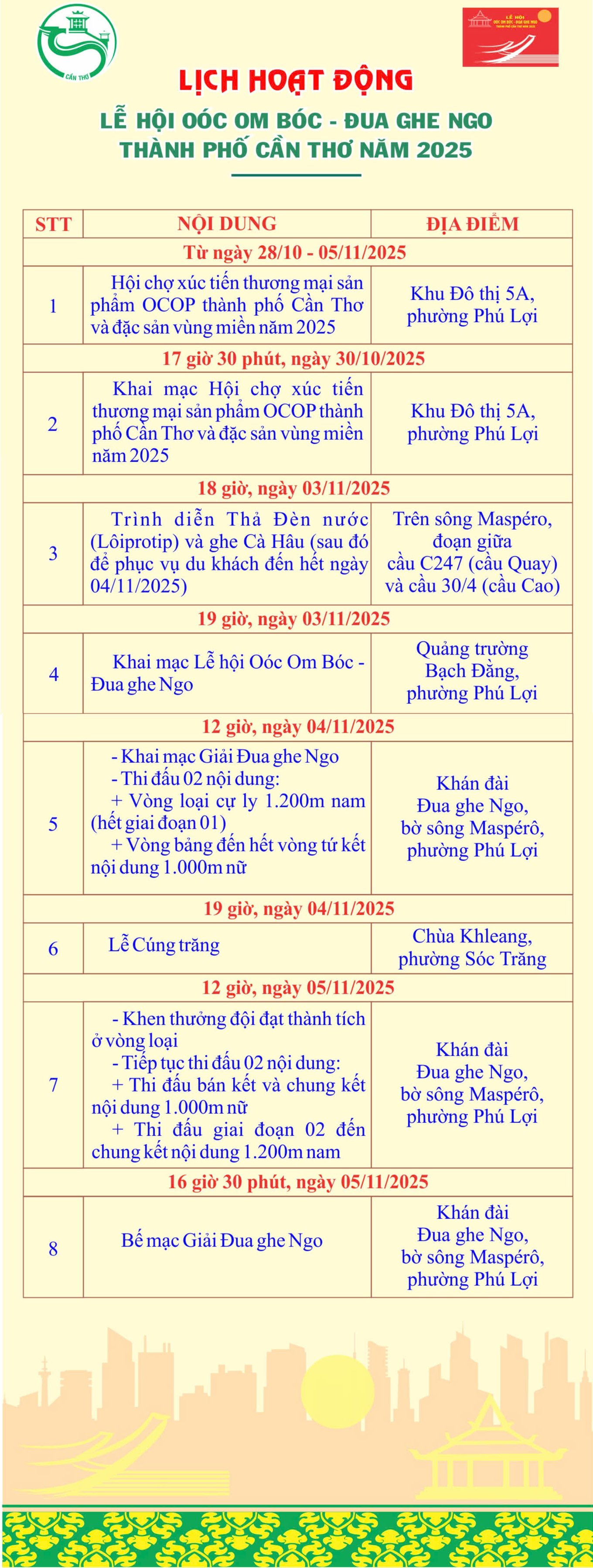 | Lễ hội Oóc Om Bóc - Đua ghe Ngo Tp.Cần Thơ Năm 2025 | ||||